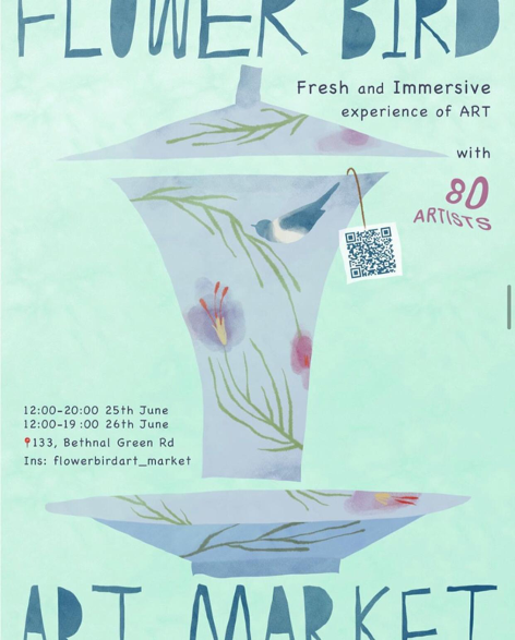 The first experience was the Flower Bird Market at Shoreditch, where I had a stand with the opportunity to sell my work for two days. As soon as I arrived, I realized they had confirmed too many artists for the space they had available, so when the artists arrived it was so cluttered you couldn’t walk through the space. The participation fee was 35 pounds.